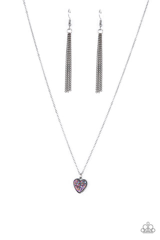 "Pitter-Patter, Goes My Heart" Silver Purple Rhinestone Heart Necklace Set