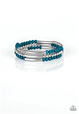 "Tourist Trap" Blue & Silver Beaded Flexible COIL bracelet