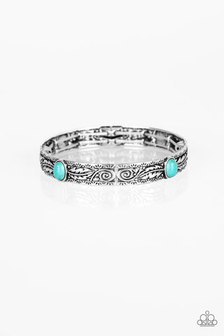 "Wild West Story" Silver Metal Blue Crackle Stone Bangle Like Stretch Bracelet
