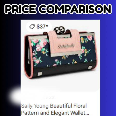 SALLY YOUNG Dark Blue Floral Wallet Purse with Classic Coin Purse Closure
